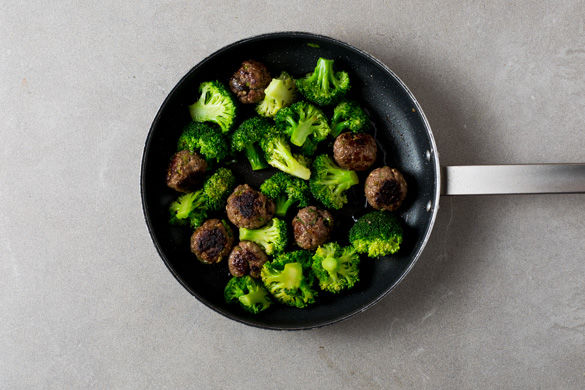 Zum Schluss die Hackbällchen mit der Teriyakisauce ablöschen und den Brokkoli untermischen. Nach Geschmack mit Sesam garnieren und mit Reis servieren.
