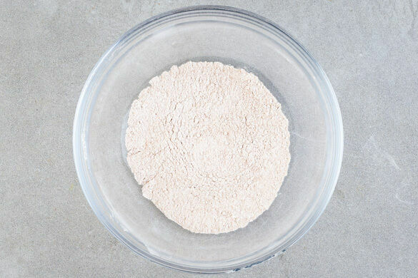 Die Butter aus dem Kühlschrank nehmen und Raumtemperatur annehmen lassen oder kurz in der Mikrowelle erwärmen, aber nicht schmelzen. 200g Mehl mit 1TL Backpulver in eine Schüssel sieben und 1TL Salz sowie den Zimt untermischen.