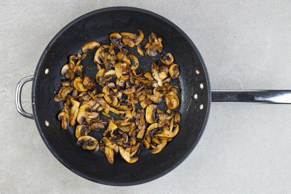 Die Pilze ggf. säubern und in dünne Scheiben schneiden. In einer großen Pfanne mit 2TL Olivenöl bei starker Hitze ca. 5Min. anbraten, ohne umzurühren. Das restliche Paprikapulver nach Geschmack und 1 kräftige Prise Salz dazugeben und weitere ca. 2Min. braten, bis die ausgetretene Flüssigkeit verdampft ist.