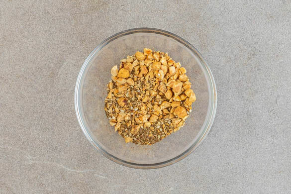 Die Haselnüsse fein hacken und mit der Gewürzmischung vermengen.