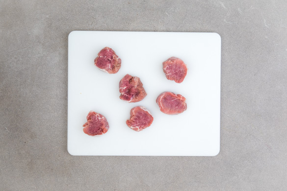 Das Fleisch trocken tupfen, von ggf. vorhandenen Sehnen befreien und quer zur Faser in ca. 2cm dicke Medaillons schneiden.