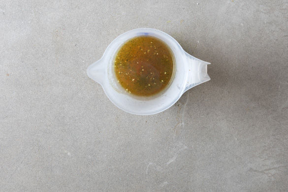100–150ml in einem Wasserkocher aufkochen und den Brühwürfel im heißen Wasser auflösen.