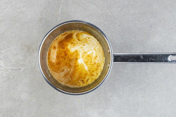 In einem kleinen Topf 6EL Zucker und 2EL Wasser langsam erhitzen, bis der Zucker eine hellbraune Farbe angenommen hat. 100ml Schlagsahne, 50g Butter, 1 Prise Salz und 1 Rosmarinzweig hinzufügen und die Sauce 6–10Min. sanft köcheln lassen, bis sich der Karamell vollständig aufgelöst hat. Den Rosmarinzweig entfernen und die Sauce etwas abkühlen lassen.