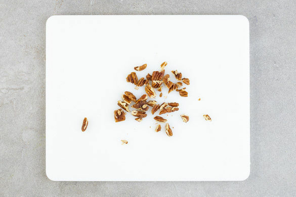 Die Pekannüsse grob hacken und auf den fertigen Galettes verteilen. Zum Servieren jedes Stück nach Belieben mit 1EL Karamellsauce beträufeln und die restliche Karamellsauce ggf. dazu servieren.