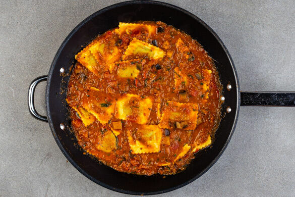Dieses Saucen-Ensemble ist voll besetzt mit italienischem Charme: Getrocknete Tomaten, würzige Oliven, Aubergine und duftendes Basilikum erzählen von einem lauen Mittsommerabend in Kalabrien, wenn sie mit cremig gefüllter Pasta auf deinem Teller gastieren. Zudem dürfen wir uns der Anwesenheit knuspriger Speckstückchen erfreuen, die sehr in ihrer Stargastrolle aufgehen. Alle beisammen? Na, dann ist ja alles „tutto bene“!