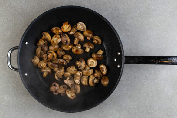 Die Pilze in einer großen Pfanne oder einem Wok mit 1EL Pflanzenöl bei mittlerer Hitze 10–12Min. braten, bis sie appetitlich gebräunt sind.