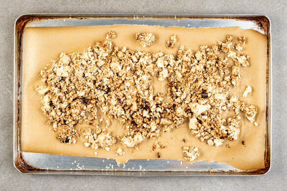 Den Backofen auf 220°C (200°C Umluft) vorheizen. Die Bohnensauce mit 1EL Pflanzenöl, 1EL Mehl und 1 Prise Pfeffer verrühren. Den Tofu mit den Fingern zerkrümeln und in Küchenkrepp gut ausdrücken, dann mit dem Sesam unter die Bohnensauce mengen. Auf einem mit Backpapier ausgelegten Backblech in 13–16Min. goldbraun backen. Zwischendurch einmal durchrühren und am Ende mit Salz würzen.
