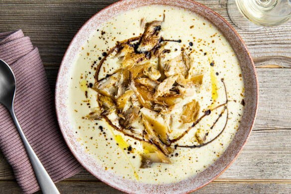 Was aussieht wie eine orientalische Keramik, heißt zwar unschuldig Blumenkohlsuppe, hat aber durchaus die Exotik in den kulinarischen Genen. Unser Koch Matthias hat sich eine wahrhaft aufregende Mischung ausgedacht, die – ganz Low Carb – das Beste aus diversen Welten vereint: Räuchermakrele und Granatapfelmelasse? Kein Problem. Orientalisches Gewürz und Crème fraîche? Warum nicht. Lass dich verzaubern und genieße den Moment!