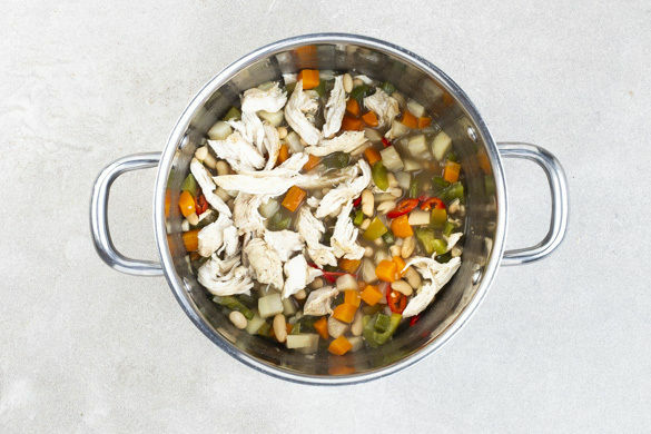 Chili con Carne ist doch irgendwie immer das Gleiche? Aber nicht doch, hier haben wir eine spannende Kreation für euch, der den klassischen Eintopf ganz neu erfindet: mit zartem Hähnchenfleisch statt Hack, köstlichen weißen Bohnen und einer Basis aus Karotte, grüner Paprika und Pastinake, die mit Kreuzkümmel und Koriander abgeschmeckt wird. Dazu ein Klacks Sauerrahm – perfekt!