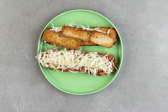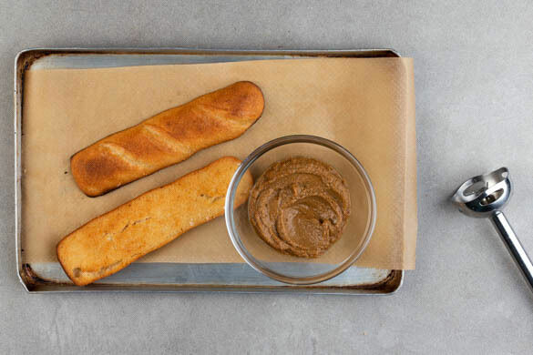 Dieses knusprige Sandwich ist dem bekannten vietnamesischen Bánh Mì nachempfunden, einem belegten Baguette mit knackigem Gemüse, Fleisch und würziger Pastete. Letztere haben wir für dieses Gericht in veganer Version aus Pilzen zubereitet, die dem Sandwich reichlich Umami verleihen. Statt Fleisch kommt goldbraun gebratener Tofu drauf, außerdem gesellen sich fruchtige Tomaten und ein selbst gemachter Krautsalat dazu. Mmmh!