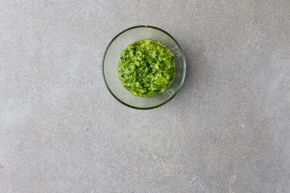 Den Käse fein reiben. Die Petersilie klein schneiden und mit den gerösteten Cashews, 2-3EL Olivenöl und dem Käse mit einem Stabmixer cremig pürieren. Mit Salz abschmecken und ggf. 1-2EL Wasser hinzufügen, falls das Pesto zu dickflüssig ist.