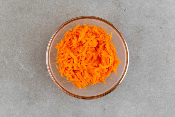 In einem mittelgroßen Topf ausreichend gesalzenes Wasser für die Nudeln zum Kochen bringen. Die Karotte ggf. schälen und grob raspeln. Das Sesamöl mit 1EL Essig sowie je 1 Prise Salz und Zucker verrühren. Die Karotten mit dem Dressing vermengen und beiseitestellen.