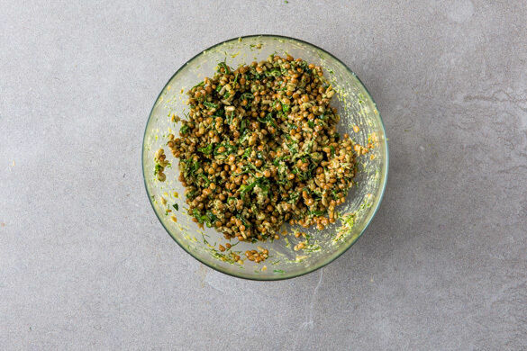Die Linsen in einem Sieb mit kaltem Wasser abspülen und abtropfen lassen, dann mit den Lauchzwiebelringen, den restlichen Sonnenblumenkernen und dem Pesto vermengen. Mit Salz und Pfeffer sowie ggf. mehr Zitronenschale abschmecken.