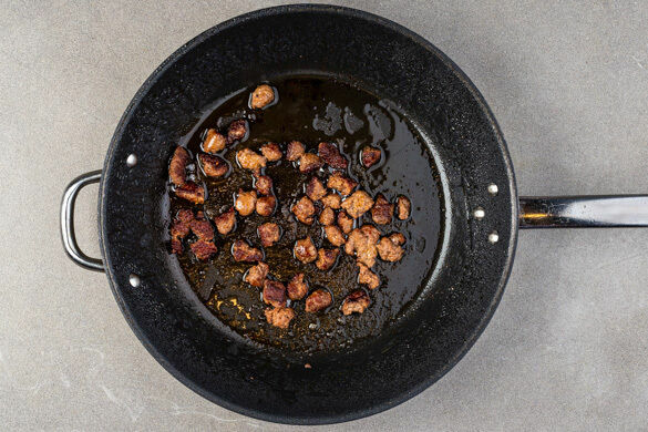 Wenn die Tage kürzer werden, kehrt auch das Verlangen nach herzhaften und wohlig füllenden Speisen wieder zurück. Zum Glück haben wir etwas Passendes für dich kreiert: Fein-würzige Rindswursthappen dürfen in der Pfanne in einer cremigen Sauce schmurgeln. Dazu gesellen sich gebackene Pilze, mit Kreuzkümmel verfeinerter Rosenkohl und al dente gekochte Orecchiette-Pasta. So harmonisch vereint heißt es nur: Guten Appetit!