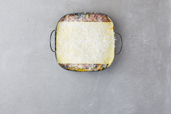 Zum Schluss den Hartkäse über die Lasagne reiben und diese ca. 15-20Min. im Ofen garen, bis der Käse eine schöne goldbraune Farbe angenommen hat und die Lasagne gut durchgewärmt ist.