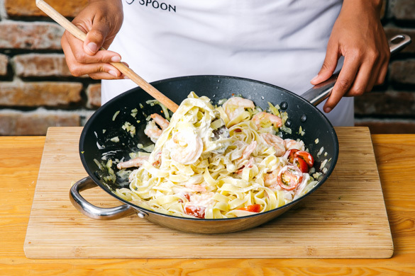 Der Magen knurrt nach einem langen Tag? Dann haben wir hier die richtige Abhilfe für dich: Die schnell zubereitete Pasta mit feinen Garnelen in einer cremigen Zitronensauce mit Kirschtomaten zaubert dir und deinen Lieben ein Lächeln ins Gesicht und macht garantiert gute Laune!