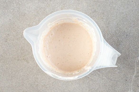 Die Zutaten für die Walnusssauce mit 2 kräftigen Prisen Salz und 1 Prise Pfeffer würzen und alles mit einem Stabmixer zu einer glatten Sauce pürieren. Je nach gewünschter Konsistenz esslöffelweise Wasser hinzugeben. Ggf. mit mehr Salz abschmecken.