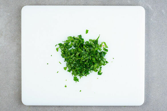 Die Petersilie samt Stängeln grob hacken.