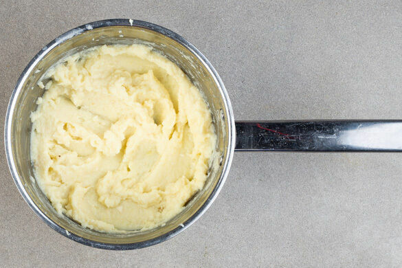 Die Pastinake schälen, in ca. 2cm dicke Scheiben schneiden und in einen kleinen Topf geben. 125ml Milch oder Wasser sowie ½TL Salz hinzugeben und aufkochen, dann abgedeckt bei niedriger Hitze 12–15Min. garen. Die ½ des Meerrettichs oder mehr nach Geschmack schälen und fein reiben. Die Pastinaken im Topf mit dem Meerrettich glatt pürieren und mit Salz und Pfeffer abschmecken.
