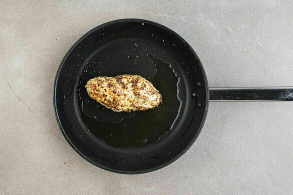Das Fleisch trocken tupfen, mit dem Senf einreiben und mit 1 Prise Salz würzen. Das Fleisch in einer großen Pfanne mit 1–2EL Olivenöl bei mittlerer Hitze auf jeder Seite 4–5Min. braten. Aus der Pfanne nehmen und warm halten.