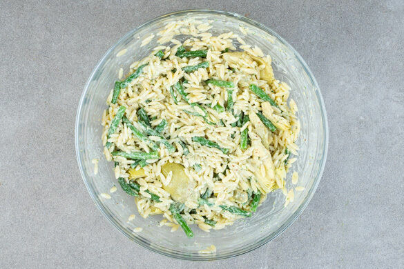Italien ist so viel mehr als Spaghetti mit Tomatensauce – nichts gegen diesen unbestrittenen Klassiker, aber wir können defintiv auch anders: Heute gibt es eine leckere Mischung aus kleiner, feiner Risoni-Pasta mit frischen grünen Bohnen, vereint durch ein aromatisch-cremiges Dressing mit Basilikum, Oregano und spritziger Zitrone. Darauf thronen edle Artischocken und deftige Rindswurst. Vielleicht (d)ein neuer Klassiker?