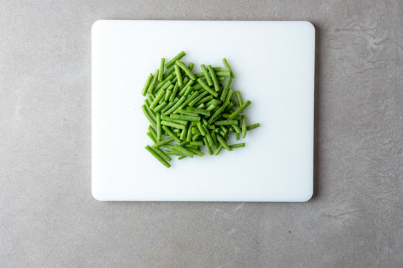 Die Enden der Bohnen abschneiden und die Bohnen in ca. 2–3cm große Stücke schneiden.