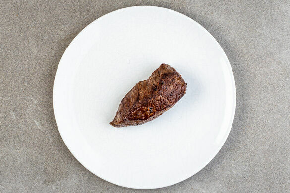 Eine große Pfanne bei mittlerer bis starker Hitze erwärmen. Das Fleisch trocken tupfen, mit 2EL Pflanzenöl einreiben und auf jeder Seite ca. 2Min. scharf anbraten. Beim Wenden jede Seite mit je 1 kräftigen Prise Salz würzen. Das Fleisch aus der Pfanne nehmen und in einer mittelgroßen Auflaufform im Ofen 8–9Min. garen, dann aus dem Ofen nehmen und ca. 5Min. ruhen lassen.