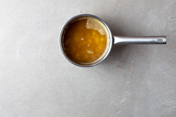 In einem kleinen Topf bei mittlerer Hitze 150ml Wasser aufkochen lassen und 1/2 Brühwürfel darin auflösen. Die Zwiebeln hinzugeben und ca. 1Min. mitkochen. Währenddessen den Dill fein hacken.