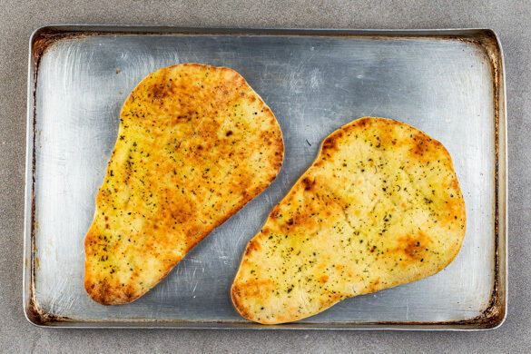 Die Naanbrote mit etwas Wasser besprenkeln und 5–6Min. im Ofen erwärmen. Die Suppe auf tiefe Teller oder Schalen verteilen und mit den Kräutern, der Limettenschale sowie den Erdnüssen garnieren. Mit den Limettenhälften und dem Naanbrot servieren.