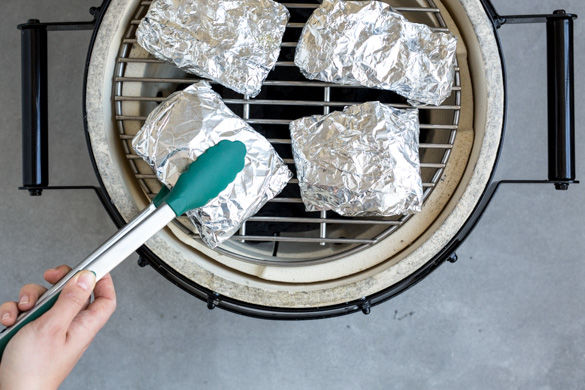 Die Feta-Päckchen zusammen mit dem restlichen Grillgut ca. 10Min. grillen. Die Zwiebeln sollten zum Schluss gar und weich sein, die Zucchini noch leichten Biss haben. Alternativ können die Feta-Päckchen auch 15–20Min. bei 200°C Ober-/Unterhitze im Backofen gegart werden.