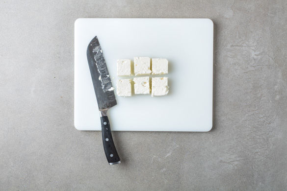 Jeden Fetakäse in 6 gleich große Stücke schneiden.