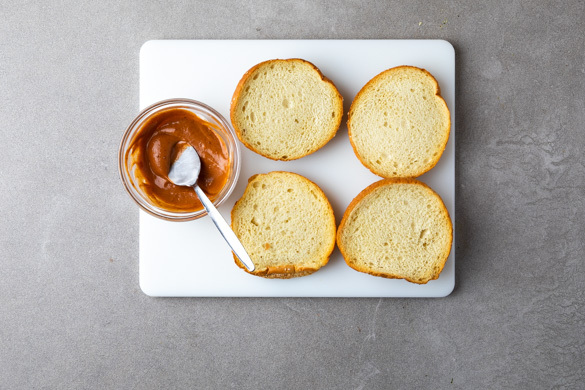 Das Hackfleisch mit Salz und Pfeffer gut würzen, gründlich verkneten und in 2 ca. 1cm dicke Pattys formen. Die Pattys in der Mitte leicht eindrücken, damit sie beim Braten flach bleiben.