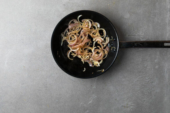 Eine Grillpfanne mit 1EL Olivenöl einpinseln und die Pattys bei starker Hitze auf jeder Seite 3–4Min. anbraten. Tipp: Wer keine Grillpfanne hat, kann die Pattys auch in der Zwiebelpfanne braten.