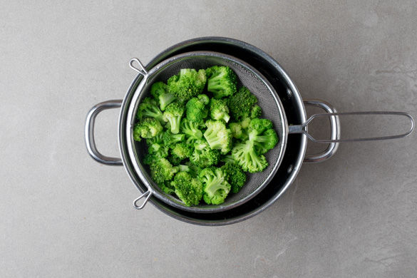 Den Brokkoli im kochenden Wasser in ca. 3–5Min. bissfest kochen. Die Petersilie samt Stängeln fein hacken.
