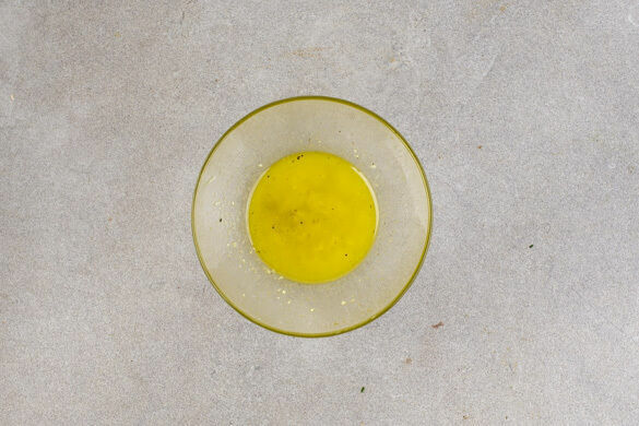 1EL Limettensaft mit der ½ des Ingwers, 2EL Olivenöl, 1TL Zucker und je 1 Prise Salz und Pfeffer zu einem Dressing verrühren. Nach Wunsch mit mehr Ingwer abschmecken.