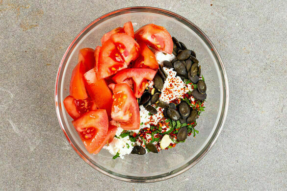Menemen ist eine türkische Rührei-Spezialität, die nach einer kleinen Stadt in der Provinz Izmir benannt ist und sich sowohl als herzhaftes Frühstück als auch nährende Hauptspeise großer Beliebtheit erfreut. Heute servieren wir die Leckerei aus knackfrischer Paprika, fruchtigen Tomaten, Zwiebeln und Knobi in feinen Mais-Tortillas und bestreuen sie mit einer Handvoll Feta-Topping mit Minze, Chili und Kürbiskernen. Lecker!