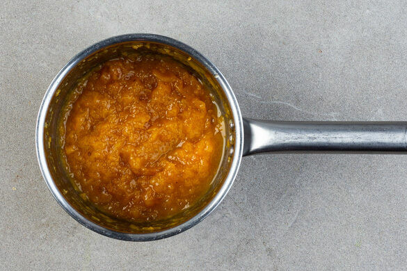 Die Cranberrys nach 16–19Min. vom Herd nehmen (das Wasser sollte jetzt um ca. ⅔ eingekocht haben) und mit einem Stabmixer zu einem Kompott pürieren. Nach Geschmack mit 1–2TL Zitronensaft und mehr Zucker verfeinern.