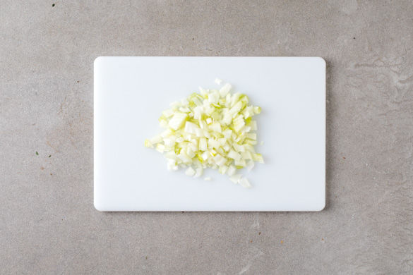 Die Zwiebel schälen, halbieren und in feine Würfel schneiden.