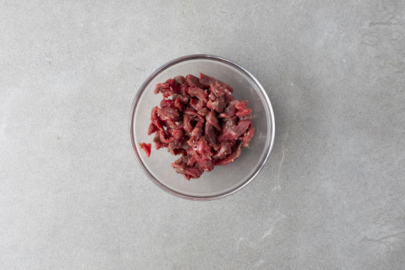 Die Zwiebeln in einer großen Pfanne mit 1–2EL Olivenöl bei mittlerer Hitze 1–2 Min. anbraten, bis sie leicht braun werden. Das Fleisch und den Knoblauch dazugeben und 2–3Min. mitbraten. Dann die Tomaten mit in die Pfanne geben und ca. 1Min. mitbraten.