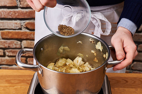 In einem großen Topf 1–2EL Pflanzenöl erhitzen und den Kohl darin 3–5Min. leicht anbraten, den Kümmel nach Geschmack einstreuen. Mit dem Apfelsaft ablöschen und ca. 10–15 Min. einkochen lassen, bis die Flüssigkeit fast verdampft ist oder bis das Kraut weich ist. Mit Salz, Pfeffer und etwas Essig kräftig abschmecken.