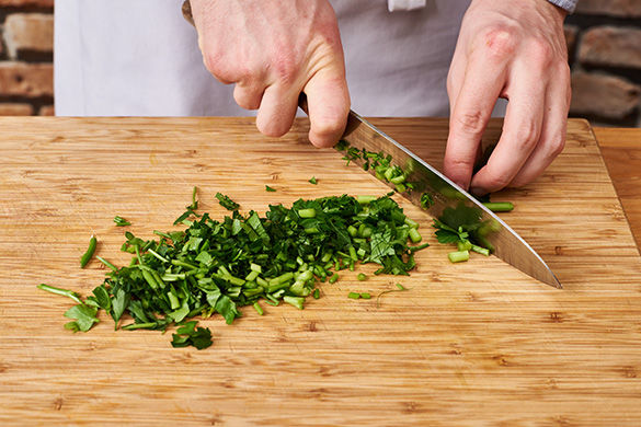 Die Petersilie samt Stängeln grob hacken. Das Kraut unter die Schupfnudeln mischen und die Speckzwiebeln darübergeben. Mit der Petersilie garniert servieren.