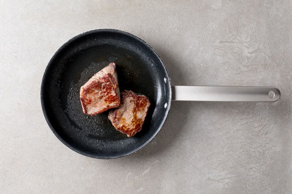 Das Fleisch in einer großen Pfanne mit 1EL Olivenöl bei mittlerer Hitze von jeder Seite 2–3Min. scharf anbraten. Aus der Pfanne nehmen, 2–3Min. ruhen lassen, dann in dünne Scheiben schneiden und in das Kräuteröl legen. Tipp: Das Fleisch sollte innen noch rosa sein. Wer es aber lieber durchgebraten mag, brät das Fleisch einfach etwas länger.
