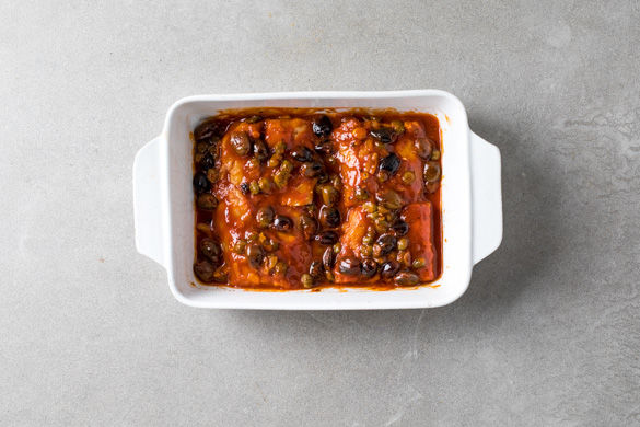 Mit Kapern und schwarzen Oliven bekommt dieses köstliche Fischgericht mit saftigem Kabeljaufilet eine wunderbar mediterrane Note. Das geröstete Ofengemüse aus Paprika, Zucchini, Karotten und Zwiebeln ist eine feine Ergänzung. So elegant und überzeugend kann leichte Küche sein!