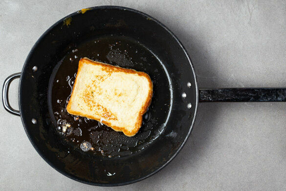 Die Toastscheiben gut in der Eiermilch wenden, etwas abtropfen lassen und auf einem Teller ablegen.