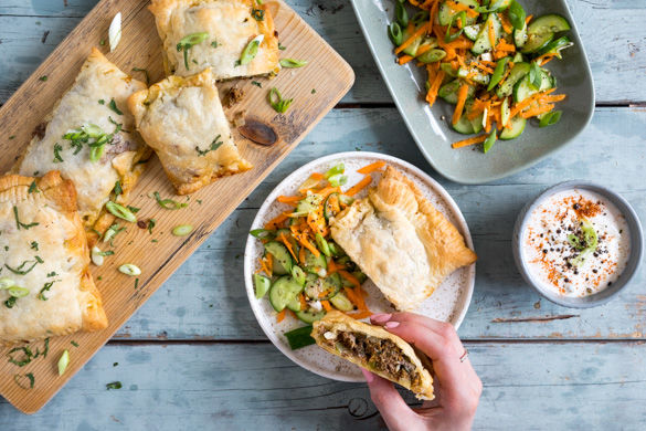 Teigtaschen sind immer ein Renner bei Groß und Klein. Die Empanadas, die wir heute für dich und deine Lieben im Angebot haben, werden mit einer herzhaften Rindfleisch-Gemüse-Mischung gefüllt. Dazu gibt es einen frischen Salat aus geraspelten Karotten und Gurke sowie einen leichten Joghurtdip mit Frühlingszwiebeln.