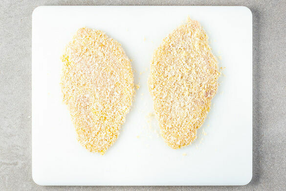 60g Mehl und 120ml Wasser zu einem zähflüssigen Teig verrühren und mit 1/2TL Paprikapulver und je 1/2TL Salz und Pfeffer würzen. Das Fleisch erst durch den Teig ziehen, dann in dem Panko-Paniermehl wenden.