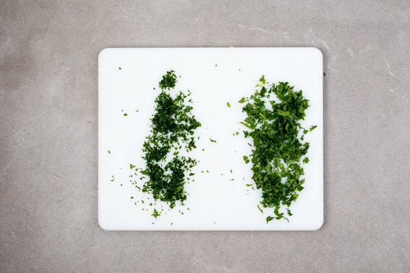 Die 1/2 der Petersilie samt Stängeln grob hacken. Die restlichen Petersilienblätter abzupfen und fein hacken. Nach 15Min. das Gemüse ohne Deckel weitere 5Min. köcheln lassen. Mit Salz, Pfeffer und Zucker abschmecken. Ggf. etwas mehr Wasser hinzugeben. Für die Quinoa 500ml leicht gesalzenes Wasser in einem mittelgroßen Topf zum Kochen bringen.