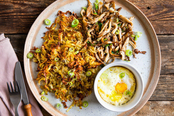 Hand aufs Herz: Wie oft nimmst du dir richtig Zeit fürs Frühstück? Immerhin ist es die wichtigste Mahlzeit des Tages und sollte dementsprechend gefeiert werden! Zum Beispiel mit unseren leckeren „Œufs cocotte“ – mit Lauchzwiebeln und Trüffelöl verfeinerten Eiern im Glas. Dazu gebratene Austernpilze mit Knoblauch und im Ofen knusprig gebackene Rösti? Na, wie klingt das? Da tanzen nicht nur die Geschmacksknospen!