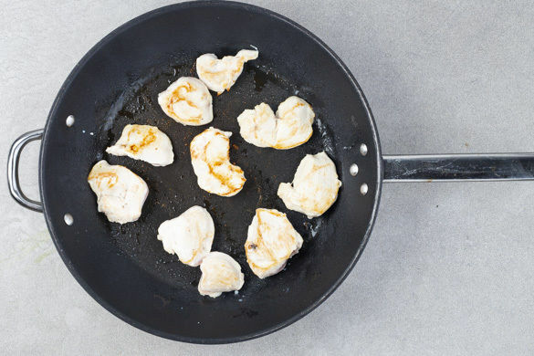 Das Fleisch trocken tupfen, in 2–3cm dicke Medaillons schneiden und mit je 1 Prise Salz und Pfeffer würzen. Das Fleisch in einer großen Pfanne mit 1EL Olivenöl bei mittlerer Hitze auf jeder Seite 2–3Min. anbraten. Aus der Pfanne nehmen und auf einem Teller beiseitestellen.