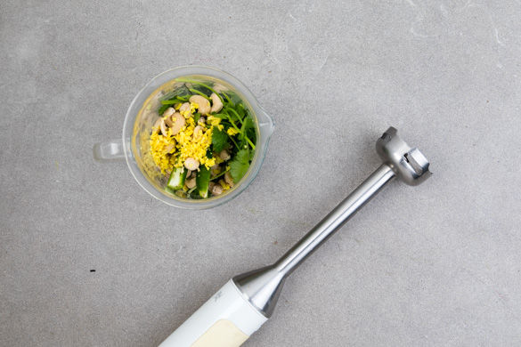Pakoras kennt man aus indischen Restaurants, wo sie als Vorspeise gehandelt werden. Für dieses Hauptgericht haben wir überlegt, wie man den Gemüseklassiker auch ohne Frittiere zu Hause zubereiten kann. Et voilà: Wir mischen Karotten, Wirsing und Zwiebeln mit dem typischen Teig aus Kichererbsenmehl und backen Taler im Ofen. Dazu gibt es einen cremigen Cashewdip und eine frische Kaki-Minze-Salsa!